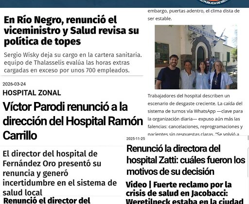 Desde ASSPUR «advertimos sobre la creciente renuncia de cargos de conducción en hospitales de toda la provincia —Bariloche, Maquinchao, Fernández Oro, Cipolletti, Viedma y Jacobacci entre ...