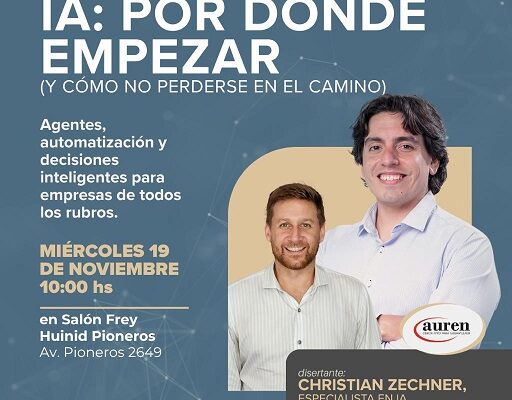 El encuentro se realizará el próximo miércoles 19 de noviembre a las 10:00 hs en el Salón Frey del Hotel Huinid Pioneros (Av. Pioneros 2649). La exposición estará a cargo de Christian Zechner, especialista en Inteligencia Artificial, con la moderación de Luis Salerno, socio de Consultoría.
