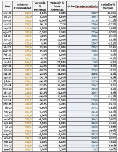 La venta de insumos para la construcción registró una caída 11,6% mensual desestacionalizada en enero