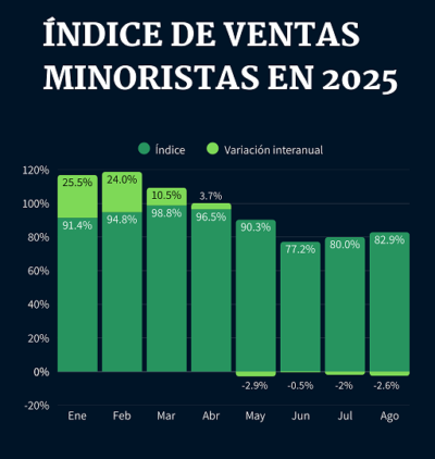 LAS VENTAS MINORISTAS CAYERON 2,6 % Y SUMAN LOS ÚLTIMOS CINCO MESES CONSECUTIVOS
