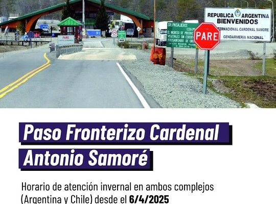 El paso Cardenal Samoré permanece abierto hasta las 19 horas, hora argentina por lo que se recomienda planificar el regreso con anticipación, llevar y tener cuidado con toda la documentación necesaria para evitar inconvenientes.