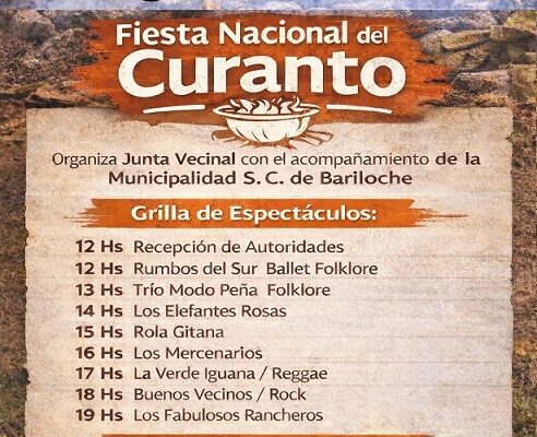 La tradicional celebración, había sido prevista para el domingo anterior, pero por cuestiones climáticas, decidieron un cambio de fecha a este domingo 22 de Marzo. Se anunció la grilla de espectáculos. La Fiesta Nacional del Curanto, la gastronomía local y el arte, tendrán un lugar predominante y es organizada por la Junta Vecinal de Colonia Suiza, contando con el acompañamiento del municipio local.-
