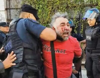 EN PROTESTA POR LA REFORMA DE LA LEY DE GLACIARES LA VALIENTE POLICÍA ATACÓ A UN CAMARÓGRAFO